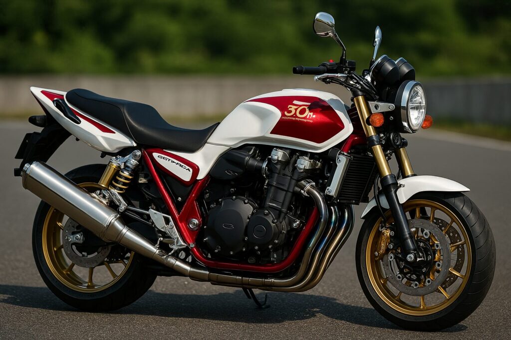 CB1300シリーズの30周年記念モデルは、初代「CB1000 SUPER FOUR」の発売から30年を祝う特別仕様車として登場しました。このモデルは、ベースとなる「CB1300 SUPER FOUR SP」および「CB1300 SUPER BOL D’OR SP」を基に、特別なデザインと装備が施されています。